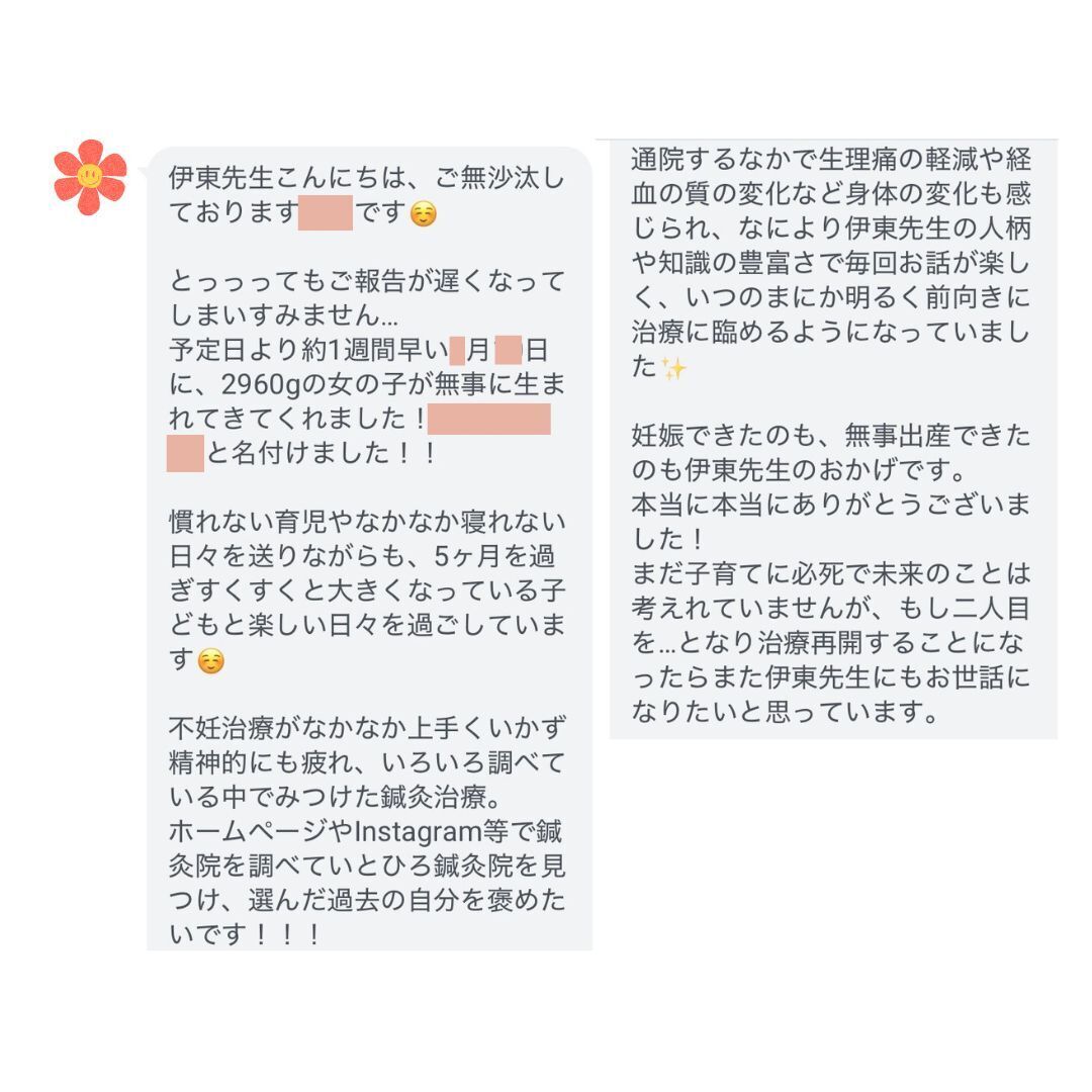 妊活中から関わらせていただいた方のご出産報告は、毎回自分のことのように嬉しくなります。