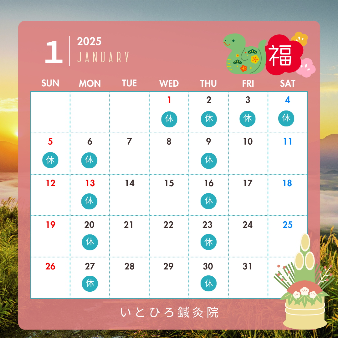 1月のスケジュール出ました2024年12月18日 20:47年始は1/7(火)からスタートです!2025年こそ「自分の体と心を整える」一歩を踏み出してみませんか?いとひろ鍼灸院は、妊活・不妊鍼灸、美容鍼灸、婦人科のお悩みに特化した女性専用の鍼灸院です。「妊娠しました!」「同窓会で友達に会って褒められた。美容鍼灸のおかげです!」「更年期の不調から卒業。毎日普通に動けるのがうれしい!」次はあなたの番です。お悩みとサヨナラしましょう。ー24時間WEB予約受付中ーはじめての体外受精年末年始のお休み